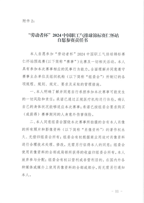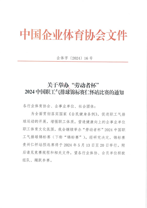 關于舉辦“勞動者杯”2024中國職工氣排球錦標賽仁懷站比賽的通知