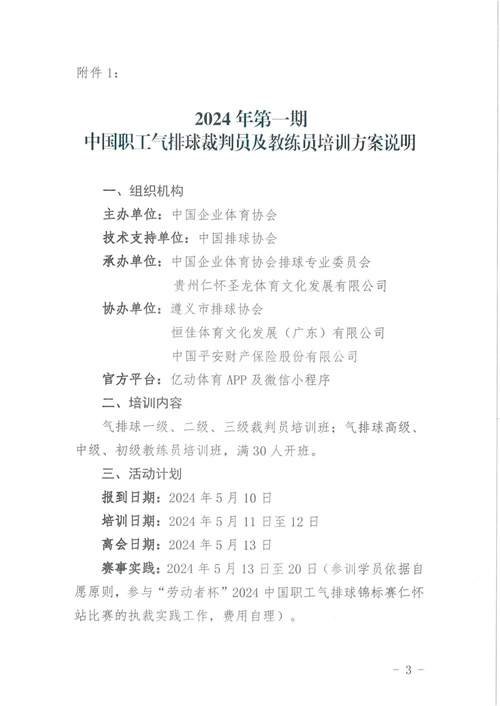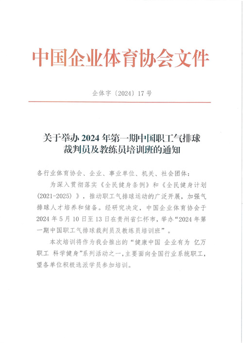 關于舉辦2024年第一期中國職工氣排球 裁判員及教練員培訓班的通知