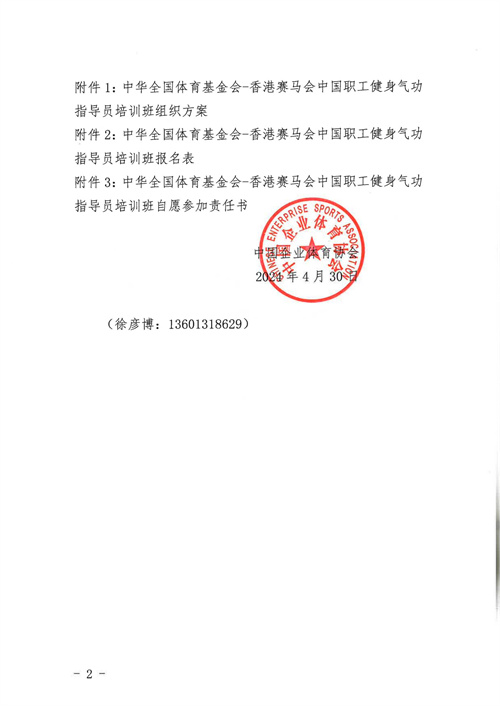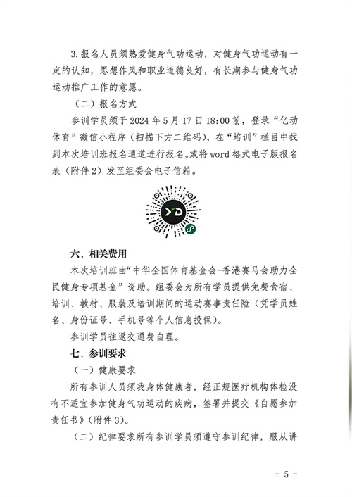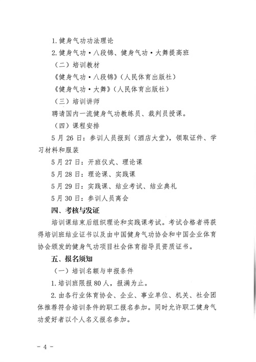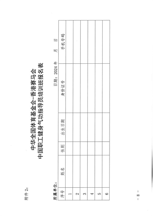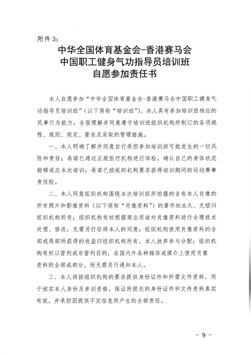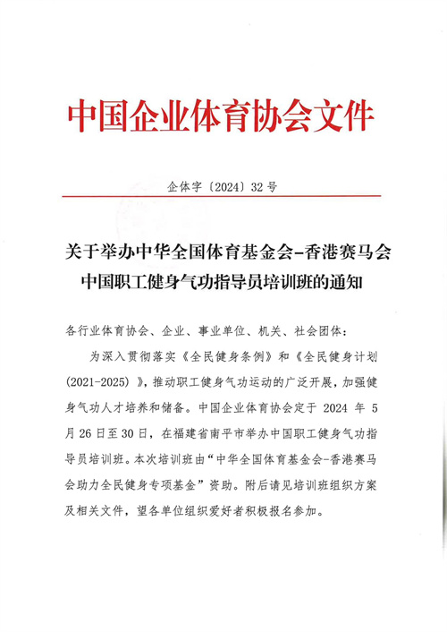 關于舉辦中華全國體育基金會-香港賽馬會中國職工健身氣功指導員培訓班的通知
