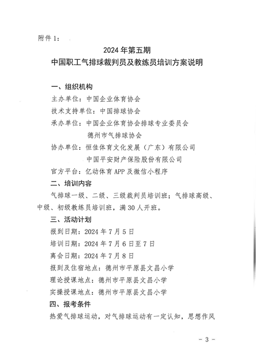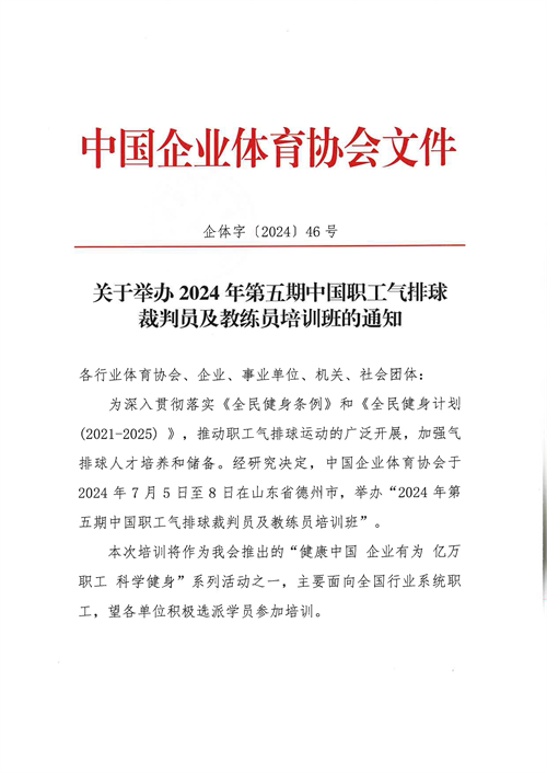 關于舉辦2024年第五期中國職工氣排球裁判員及教練員培訓班的通知