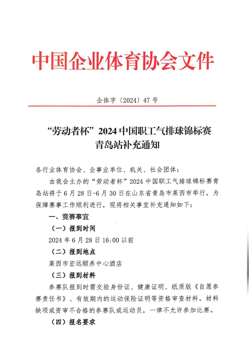 “勞動(dòng)者杯”2024中國(guó)職工氣排球錦標(biāo)賽青島站補(bǔ)充通知