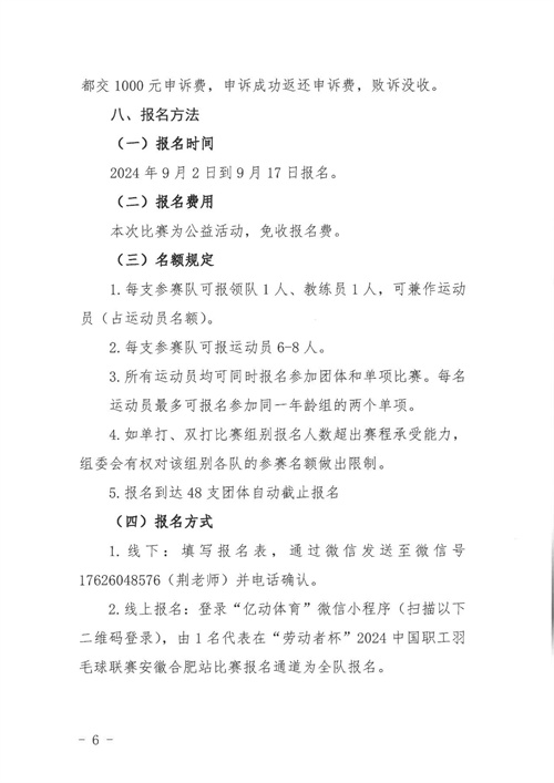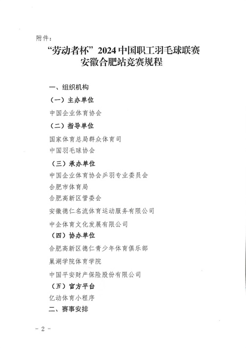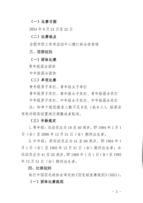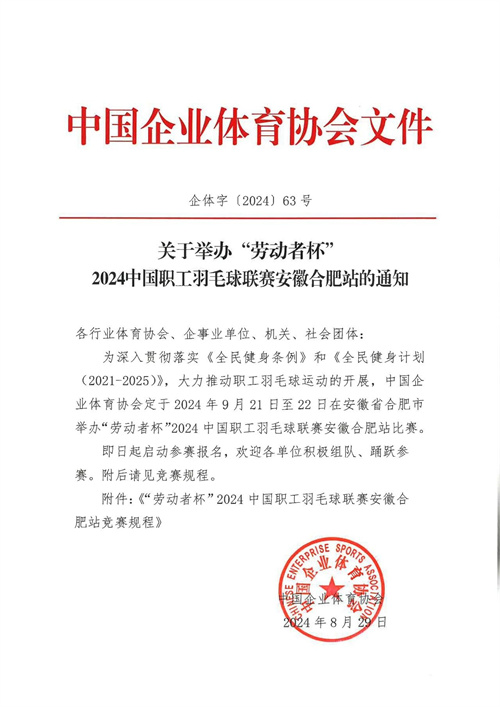 關于舉辦“勞動者杯”2024中國職工羽毛球聯賽安徽合肥站的通知