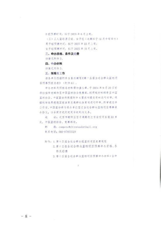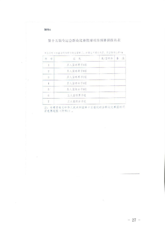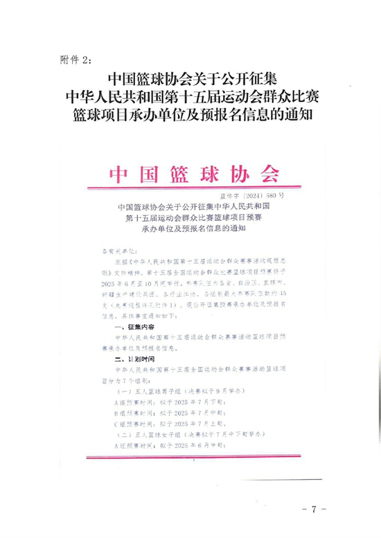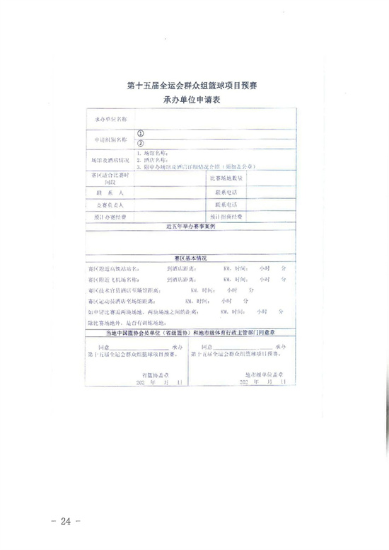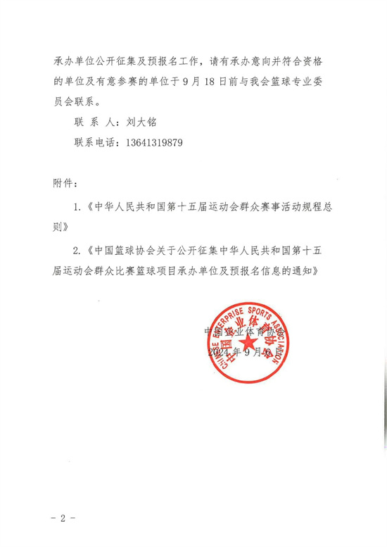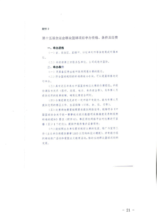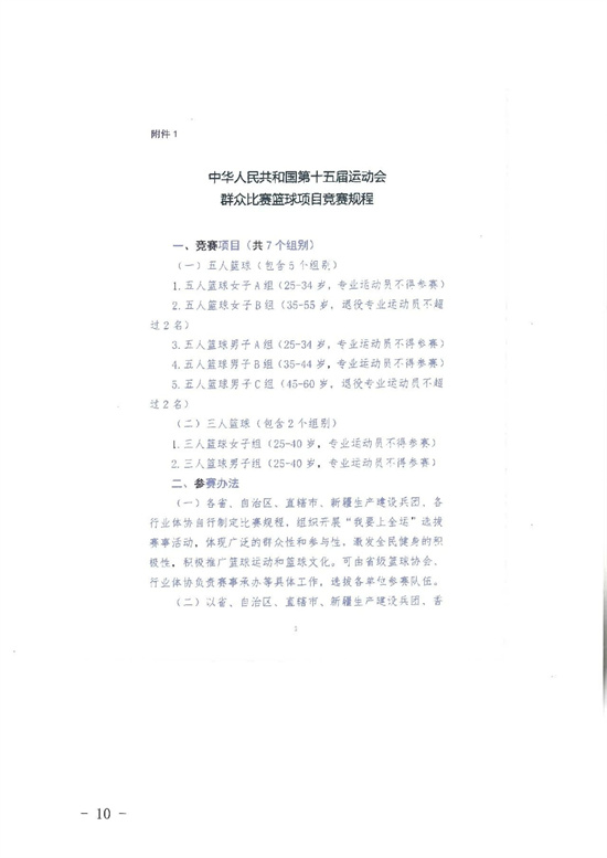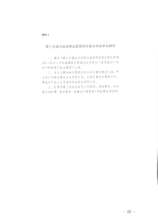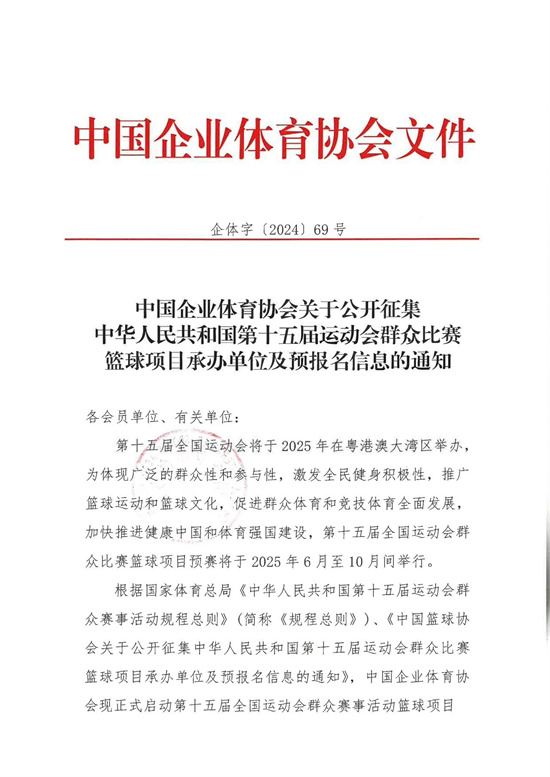 中國企業體育協會關于公開征集中華人民共和國第十五屆運動會群眾比賽籃球項目承辦單位及預報名信息的通知