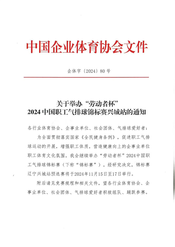 關(guān)于舉辦“勞動者杯”中國職工氣排球錦標(biāo)賽興城站的通知