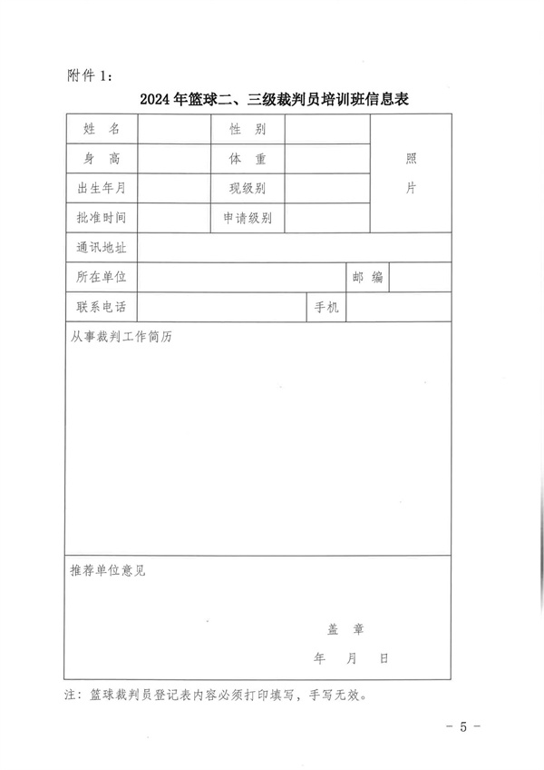2、附件1 2024年籃球二、三級裁判員培訓(xùn)班信息表
