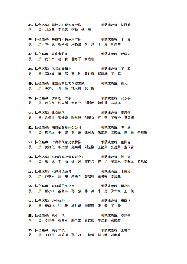 截止至2020年7月31日20:00時,2020(首屆)中國職工橋牌錦標(biāo)賽報名工作順利結(jié)束。本次報名工作受到了各行業(yè)體育協(xié)會,各會員單位、機關(guān)、企事業(yè)單位和社會團體的大力支持。經(jīng)統(tǒng)計,已報名隊伍共62支,總計408人。詳細信息如下: