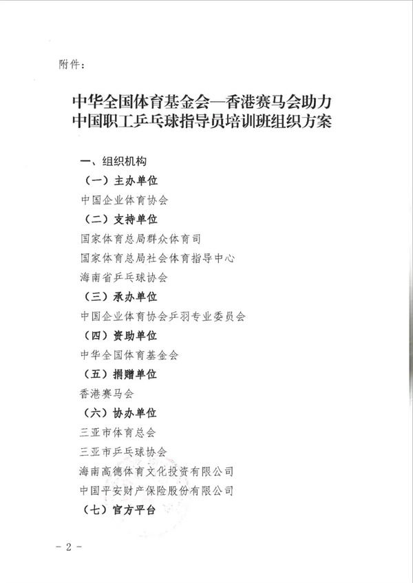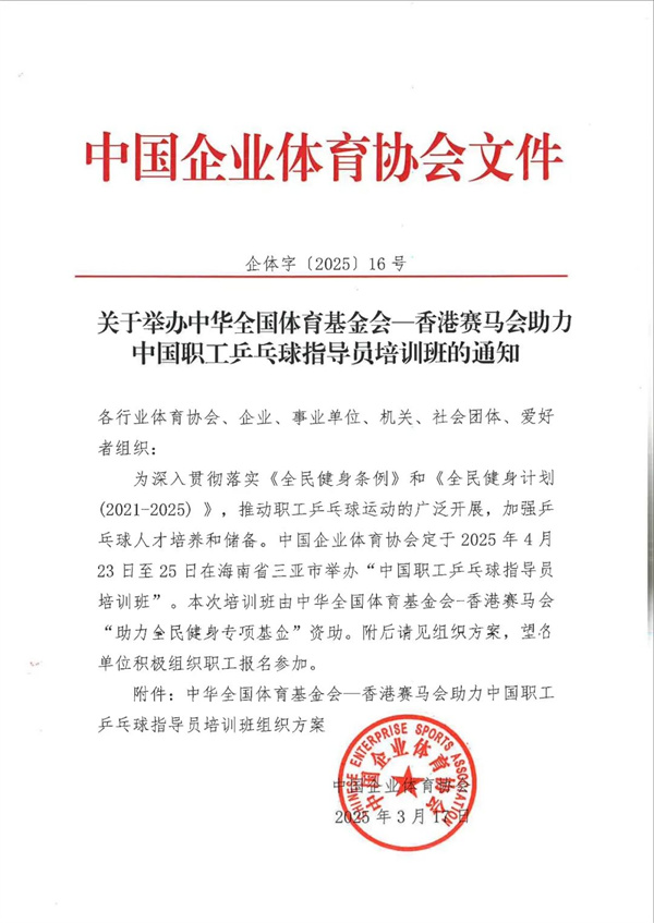 關(guān)于舉辦中華全國(guó)體育基金會(huì)-香港賽馬會(huì)助力中國(guó)職工乒乓球指導(dǎo)員培訓(xùn)班的通知