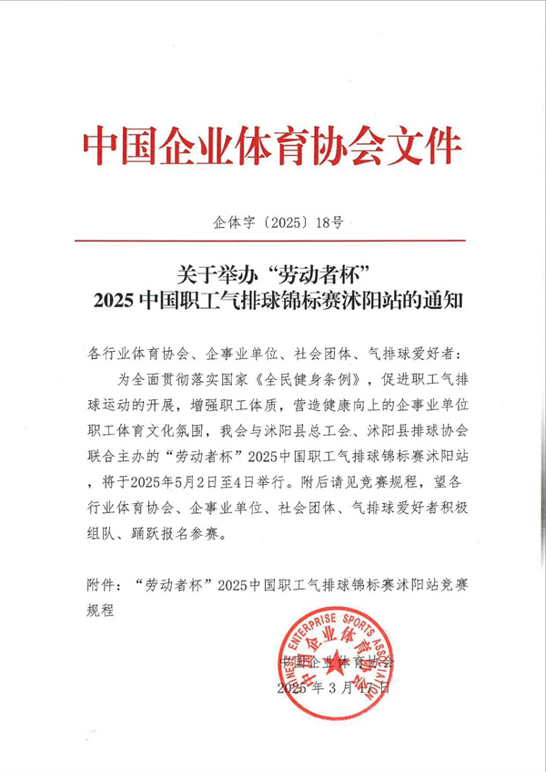 關于舉辦“勞動者杯”2025中國職工氣排球錦標賽沭陽站的通知