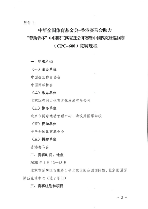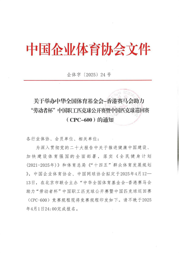 關于舉辦中華全國體育基金會-香港賽馬會助力“勞動者杯”中國職工匹克球公開賽暨中國匹克球巡回賽(CPC-600)的通知