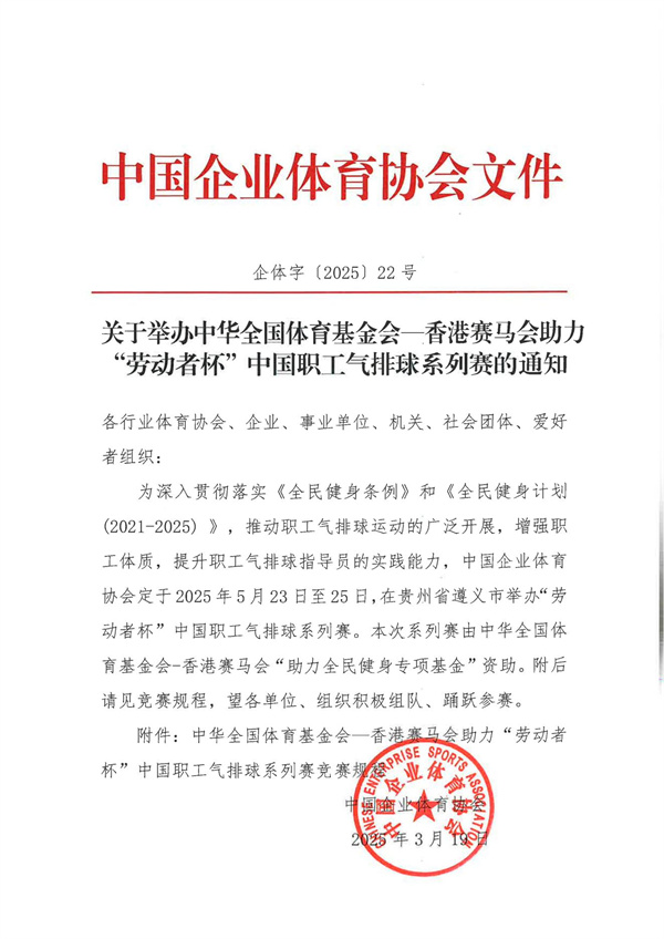 關(guān)于舉辦中華全國體育基金會—香港賽馬會助力“勞動者杯”中國職工氣排球系列賽的通知