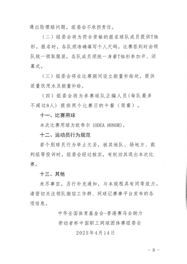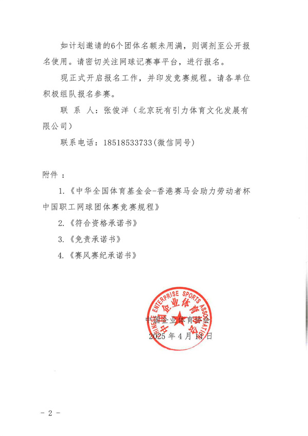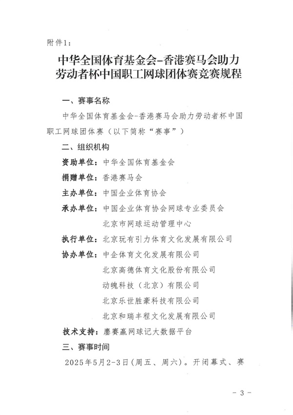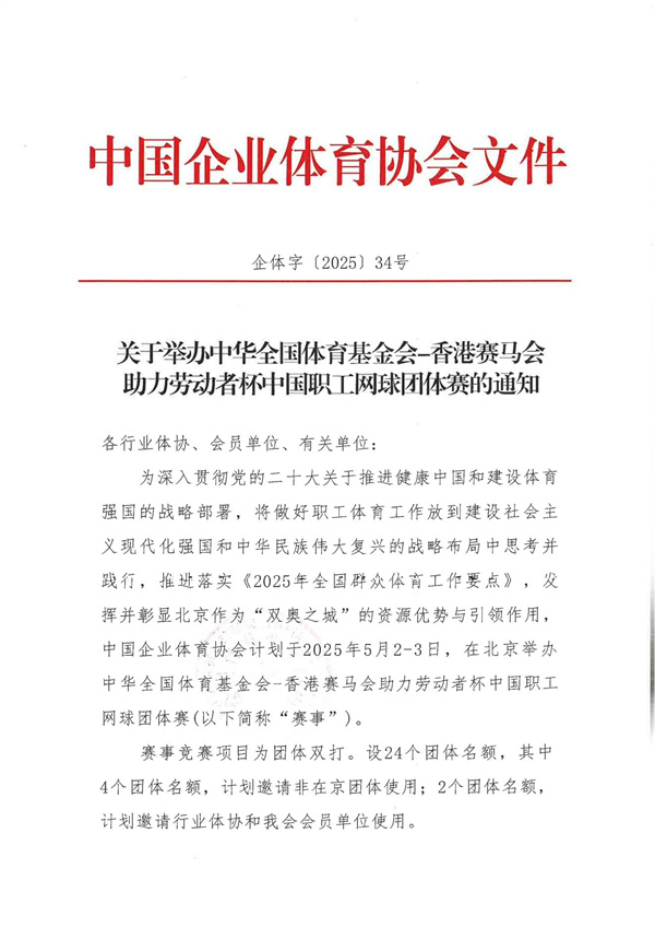 1、關于舉辦中華全國體育基金會-香港賽馬會助力勞動者杯中國職工網球團體賽的通知