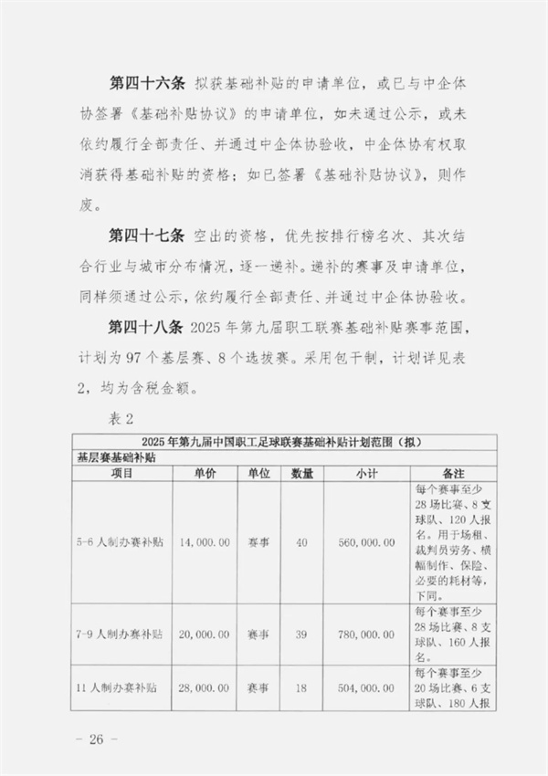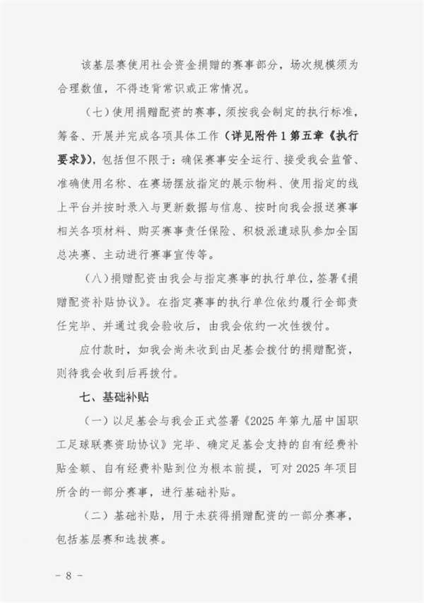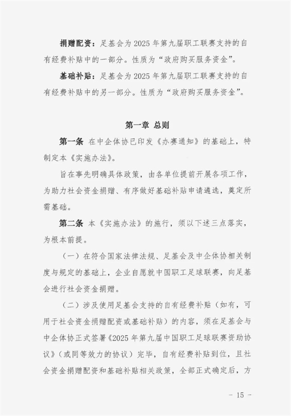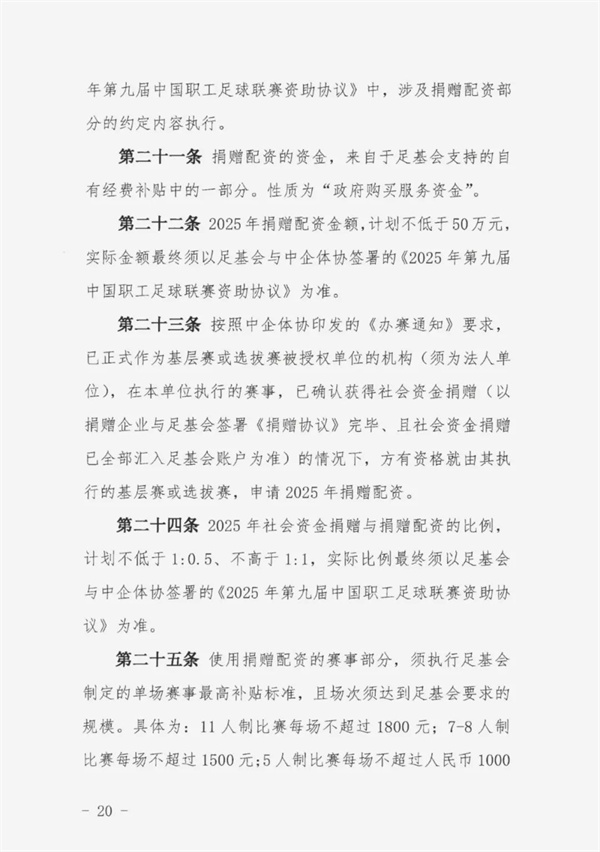2、附加1《鼓勵對2025年“全民健身 健康中國”第九屆中國職工足球聯賽進行社會資金捐贈及計劃遴選一部分賽事予以基礎補貼的實施辦法(試行)》