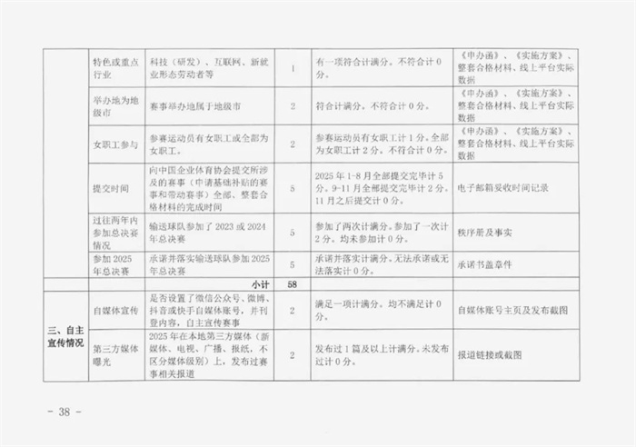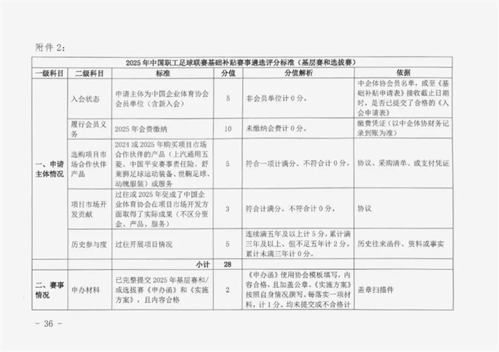 3、附件2:2025年中國職工足球聯賽基礎補貼賽事遴選評分標準(基層賽和選拔賽)