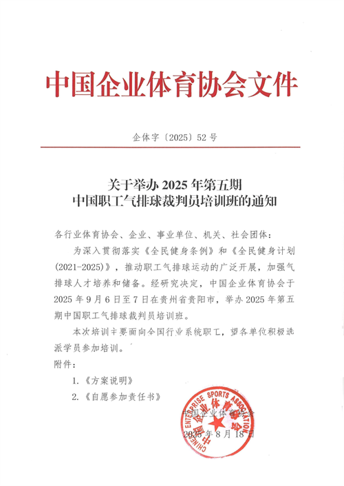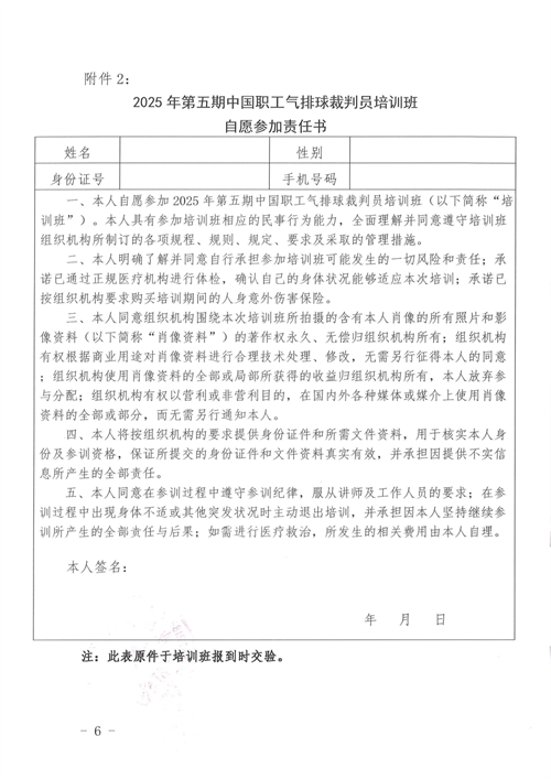 關于舉辦2025年第五期中國職工氣排球裁判員培訓班的通知