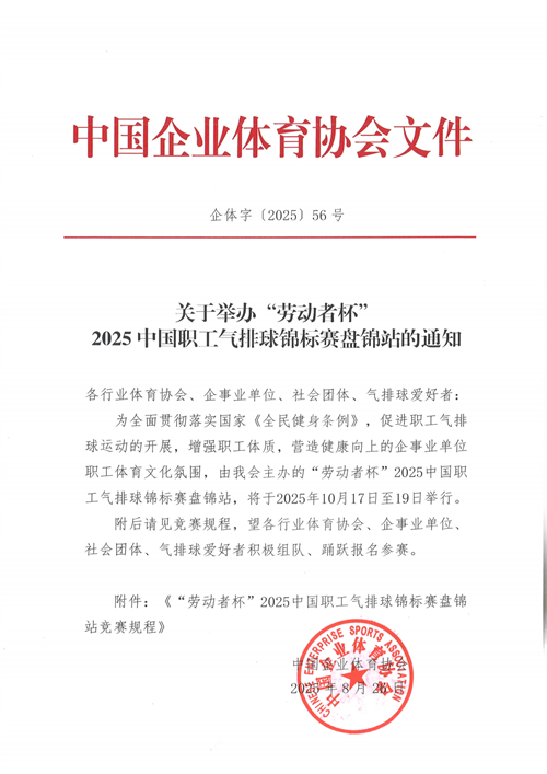 關于舉辦“勞動者杯”2025年中國職工氣排球錦標賽盤錦站的通知