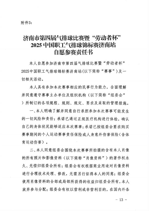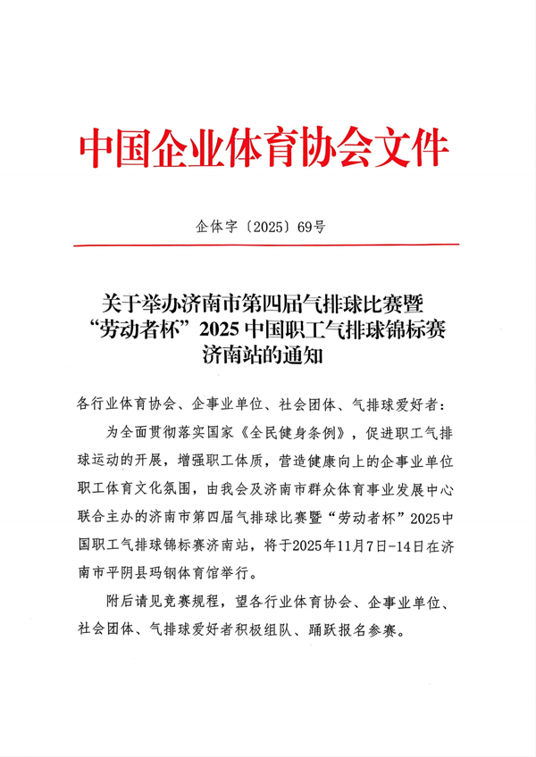 關于舉辦濟南市第四屆氣排球比賽暨“勞動者杯”2025中國職工氣排球錦標賽濟南站的通知