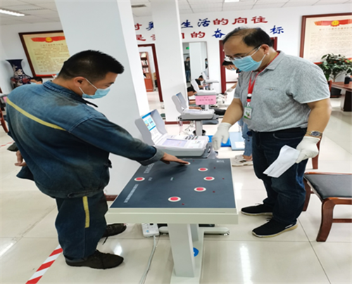 二是注重發(fā)揮“把關(guān)員”作用。考慮到疫情防控常態(tài)化的特殊時(shí)期,選擇通風(fēng)良好的場(chǎng)地,現(xiàn)場(chǎng)配備了消毒液、酒精免洗液、口罩等防疫物資,堅(jiān)持監(jiān)測(cè)設(shè)備消毒制度,對(duì)受測(cè)人員嚴(yán)格落實(shí)體溫檢測(cè)、1米以上間隔排隊(duì)等規(guī)定,現(xiàn)場(chǎng)填寫調(diào)查問卷、讀取身份證、辦理IC卡等環(huán)節(jié)井然有序,所有監(jiān)測(cè)項(xiàng)目在25-35分鐘時(shí)間內(nèi)完成,最終形成一份體質(zhì)評(píng)估報(bào)告,為受測(cè)采掘一線礦工了解自己的身體素質(zhì)情況,如何參加體育運(yùn)動(dòng)、科學(xué)健身等提供了科學(xué)依據(jù)。讓采掘一線礦工熱情而來、滿意而歸。