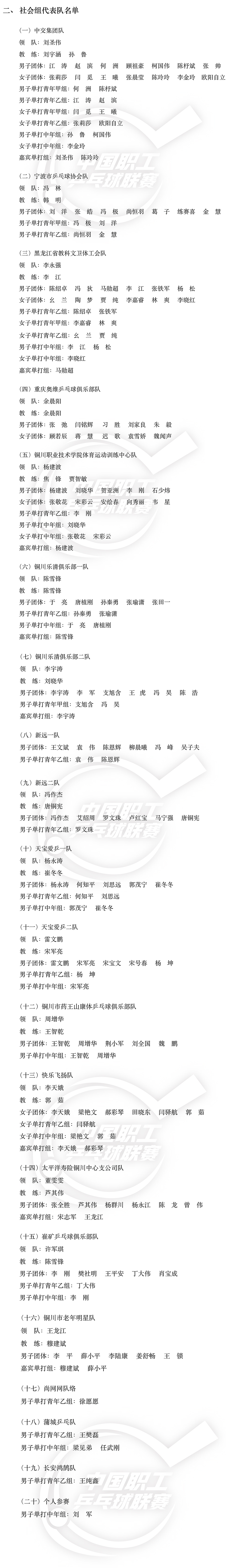 2020中國職工乒乓球聯賽總決賽參賽名單公示