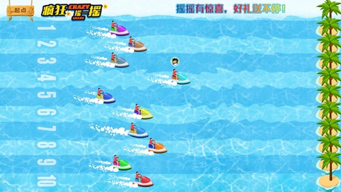 參與者事先選擇小艇編號,通過搖動手機驅動小艇前進,先到終點者獲獎。