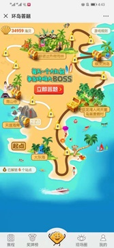 游戲共設置五個賽段,每天解鎖一個賽段,每個賽段有三個站點,包含1個寶箱和2個錢袋。參與者通過答題闖關贏得積分(“海貝”)、兌換獎品。