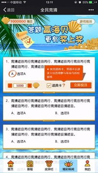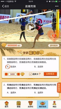 在職沙會比賽直播時,對正在直播的比賽題目進行實時競猜,使用“海貝”投注,猜對可贏得“海貝”、兌換獎品。