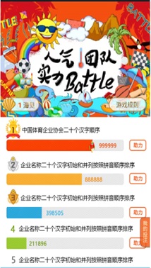 除了賽事信息系統以外,我們還在“中企體育”公眾號上為職沙會量身定制了3大類、14款互動競猜游戲,在職沙會賽場向所有參賽人員、工作人員和觀眾開放,并提供了手機、運動手環、賽會吉祥物、首日封等豐厚獎品。
