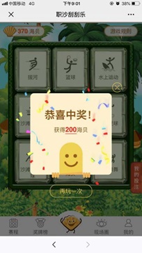 參與者任選一款主題票進行刮獎,刮開即顯示中獎的海貝數量。
