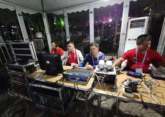 視頻直播團(tuán)隊(duì)由36人組成(負(fù)責(zé)人1人,導(dǎo)播5人,字幕/推流人員4人,視頻技術(shù)工程師2人,無人機(jī)航拍1人,音頻師1人,攝像師18人,現(xiàn)場制片1人,網(wǎng)絡(luò)工程師1人,后勤保障2人)。