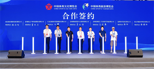 會上還進行了2023—2027年“兩個博覽會”落戶蘇州揭牌儀式、戰略合作簽約儀式,河北、江蘇、福建、江西、山東、河南、貴州、云南、寧夏等體育局和北京奧林匹克中心區管委會代表;中國“體育旅游專業協同聯盟”、上海體育大學經濟管理學院、中國體育旅游與文化大數據研究中心、四川省體育博物館等高校和博物館代表及江蘇金陵股份有限公司、昆山邁橙體育發展有限公司、南京善跑體育科技有限公司、澄湖航空飛行營地等企業代表進行現場簽約,拉開“兩個博覽會”籌備工作和招商招展工作的帷幕。