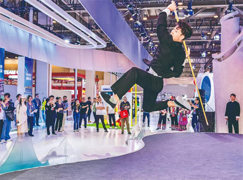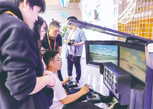 體現荊楚豐富體育旅游資源的互動體驗區更是人氣爆棚。在釣魚產業展區,觀眾可以戴上VR設備,身臨其境感受在湖邊釣魚的快樂;在冰雪運動展區,通過復原場景還原了湖北的滑雪賽道,讓觀眾感受在南方滑雪的魅力;在馬運動展區,騎上互動裝備體驗馬術的樂趣;在航空運動展區,展示了AS700民用載人飛艇和通用航空飛機模型……讓觀眾仿佛置身于真實的運動場景中。