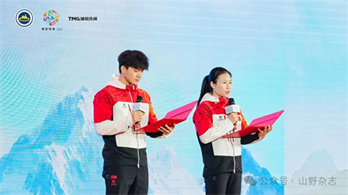 國家攀巖隊運動員,巴黎奧運會攀巖男、女子速度賽亞軍伍鵬、鄧麗娟出席大會開幕式并宣讀《登山戶外安全倡議書》,呼吁大家做足行前準備、增強安全意識、遵循“無痕山林”原則,營造更安全、更有序、更健康的運動環境。