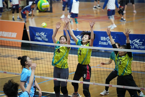 一傳、二傳、扣球、攔網……你追我趕、每球必爭,現場加油聲、吶喊聲此起彼伏、響徹賽場。