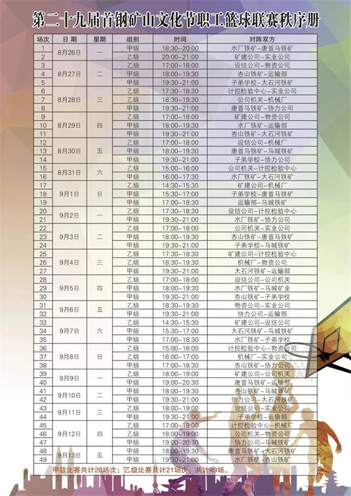 49場鏖戰(zhàn),每一場都是精彩的視覺盛宴,不容錯過!為您奉上籃球聯(lián)賽秩序冊,咱開著“攻略”合理安排時間!