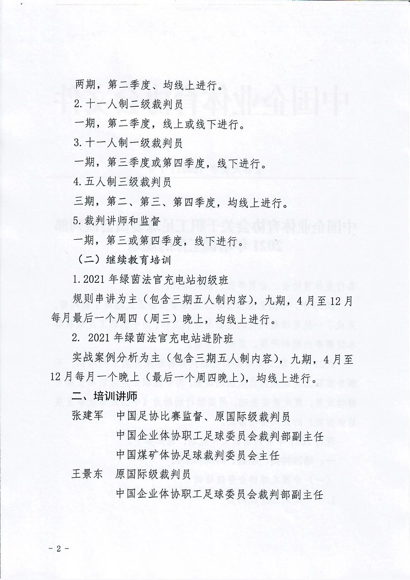 2021年,我們除了繼續進行中國足球協會二級、三級裁判員培訓以外,還將開放線下一級裁判員的培訓工作,敬請期待。