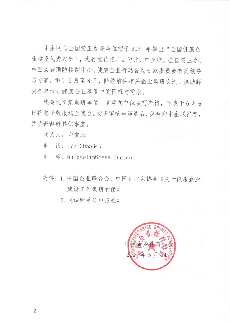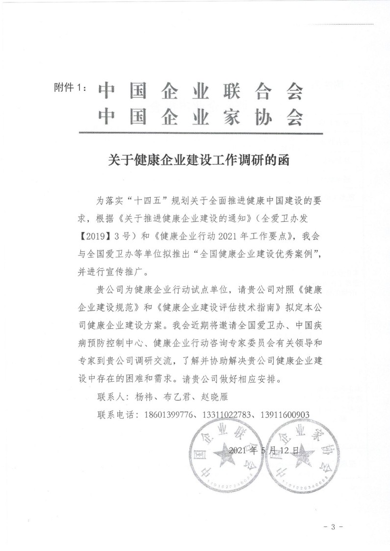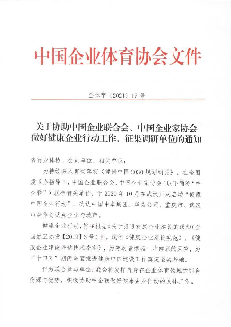關于協助中國企業聯合會、中國企業家協會做好健康企業行動工作、征集調研單位的通知