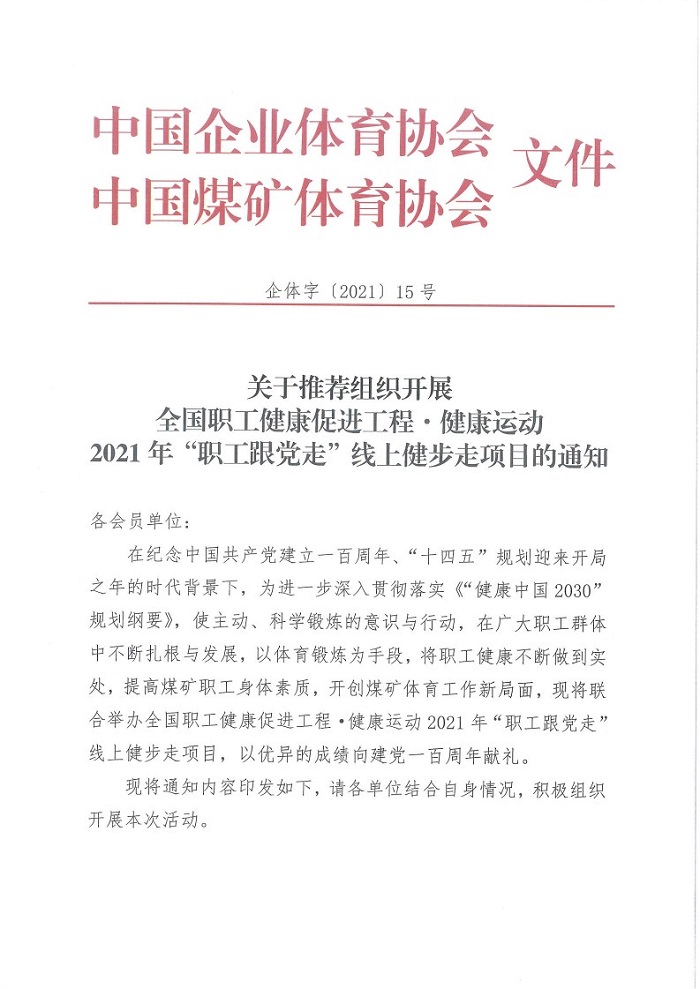 關(guān)于推薦全國(guó)職工健康促進(jìn)工程2021年“職工跟黨走”健康運(yùn)動(dòng)線上健步走項(xiàng)目的通知