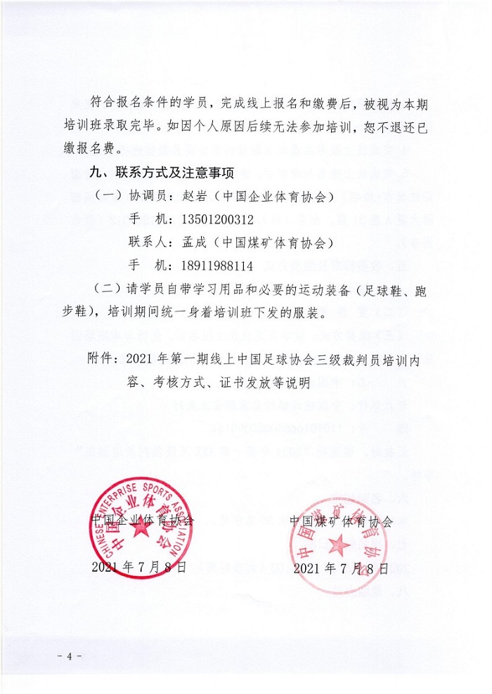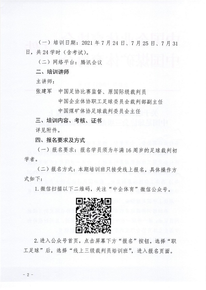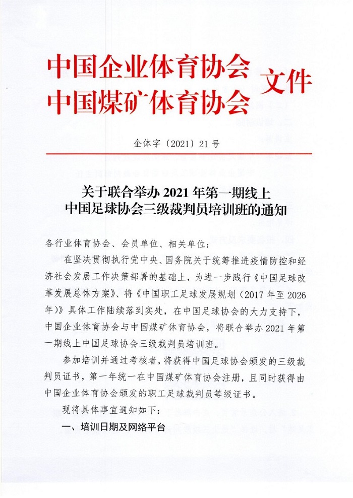 關于聯合舉辦2021年第一期線上中國足球協會三級裁判員培訓班的通知