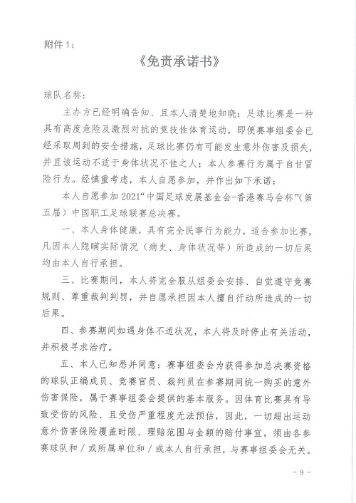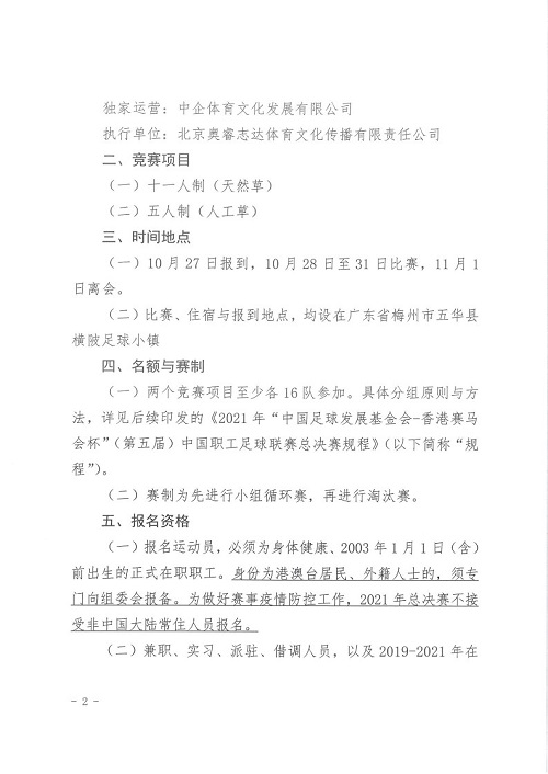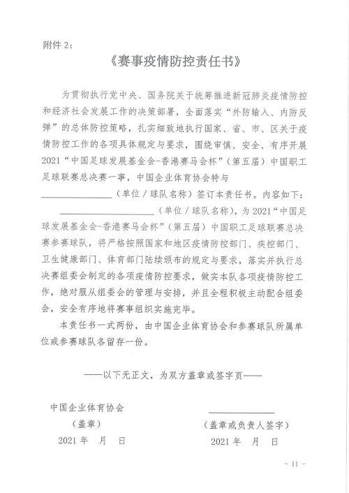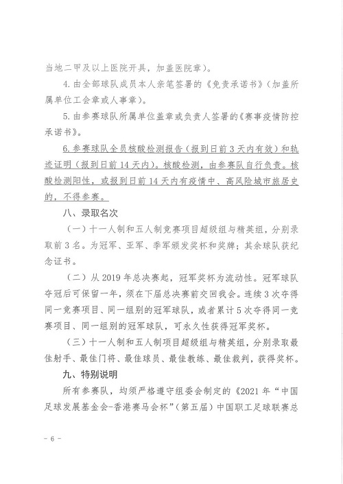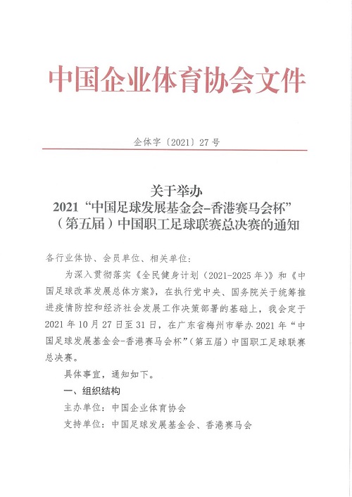 關于舉辦2021“中國足球發展基金會-香港賽馬會杯”(第五屆)中國職工足球聯賽總決賽的通知