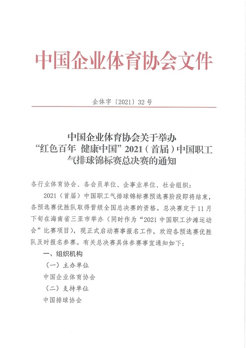 中國企業(yè)體育協(xié)會關(guān)于舉辦2021中國職工氣排球錦標(biāo)賽總決賽的通知
