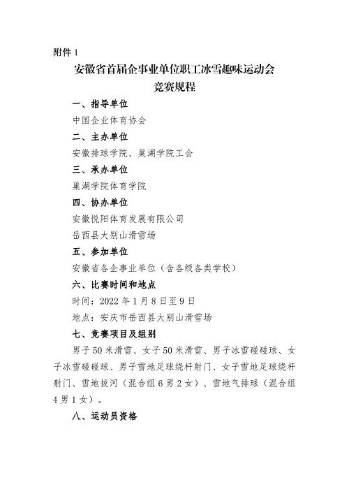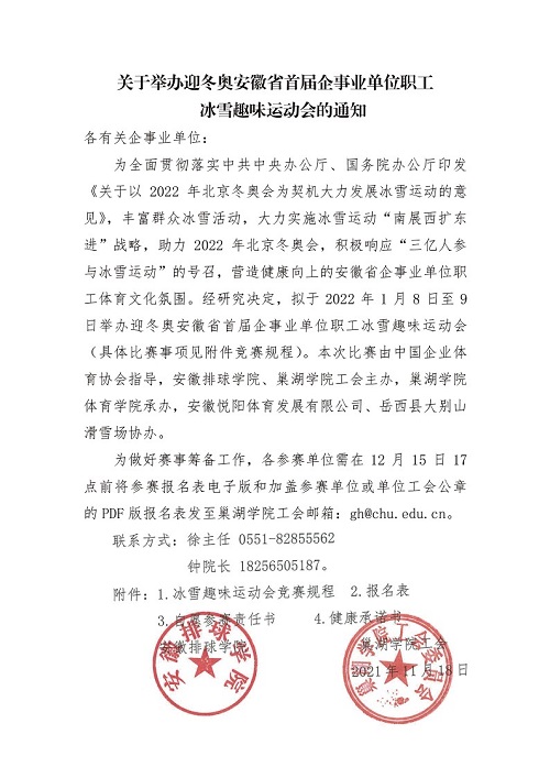 關于舉辦迎冬奧安徽省首屆企事業單位職工冰雪趣味運動會的通知