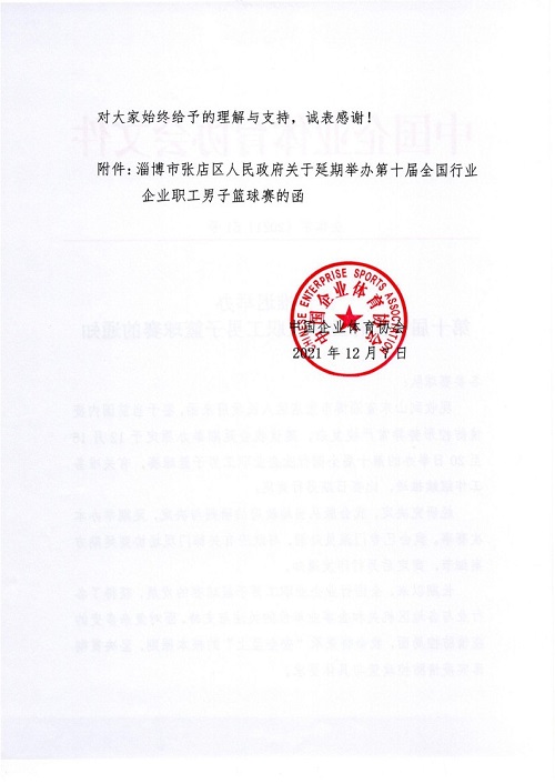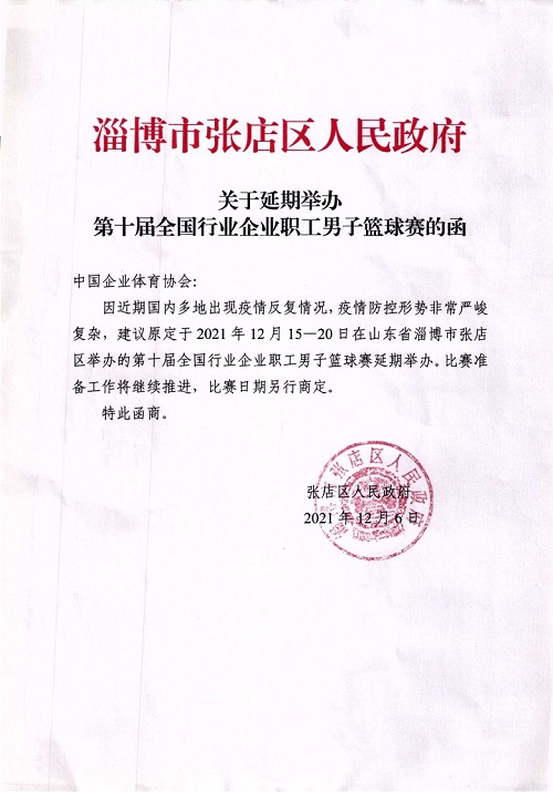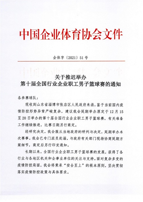 關于推遲舉辦第十屆全國行業企業職工男子籃球賽的通知