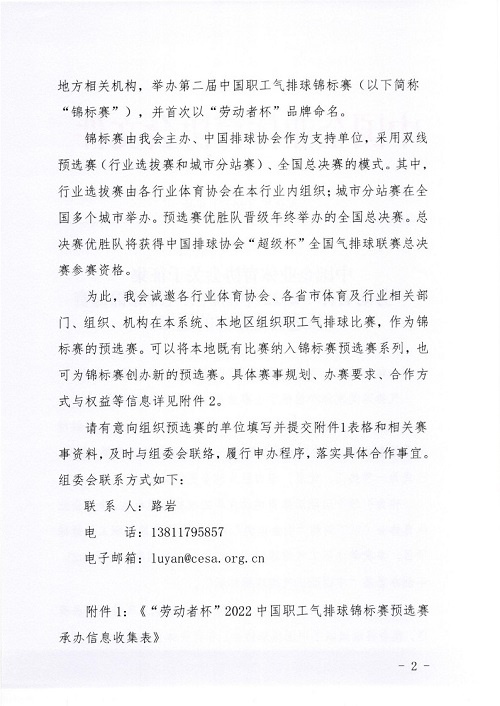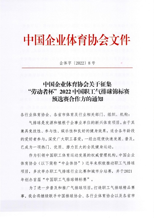 關于征集“勞動者杯”2022中國職工氣排球錦標賽預選賽合作方的通知