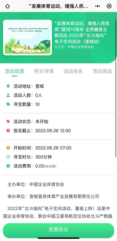 “發(fā)展體育運(yùn)動(dòng),增強(qiáng)人民體質(zhì)”題詞70周年全民健身主題活動(dòng),2022年“北斗指向”電子定向(安徽宣城站)