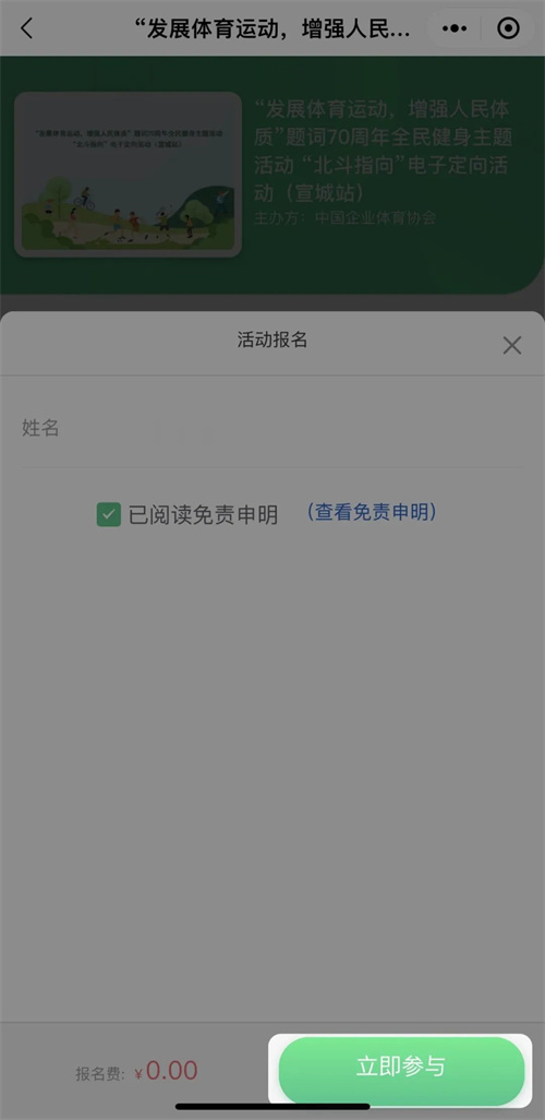 5. 輸入姓名并勾選免責(zé)聲明后即可。