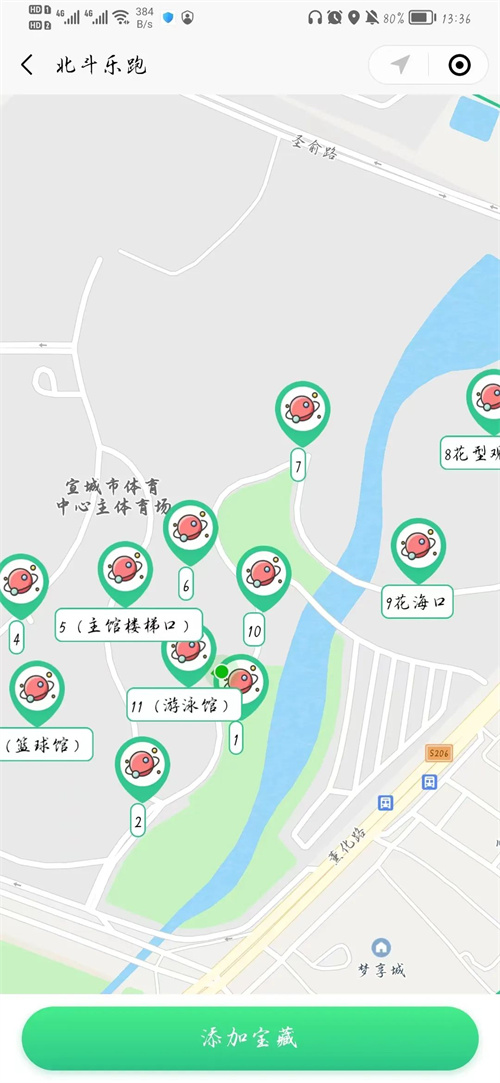 6. 根據(jù)衛(wèi)星導(dǎo)航進(jìn)入“打卡點(diǎn)”獲得積分。