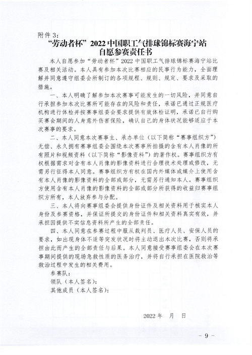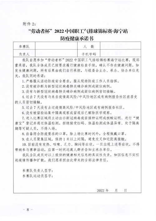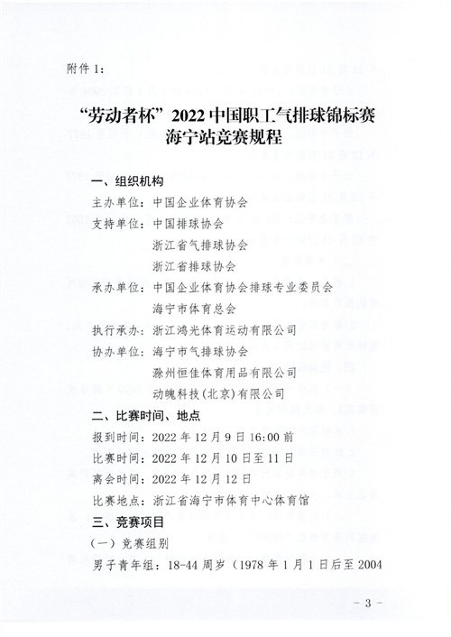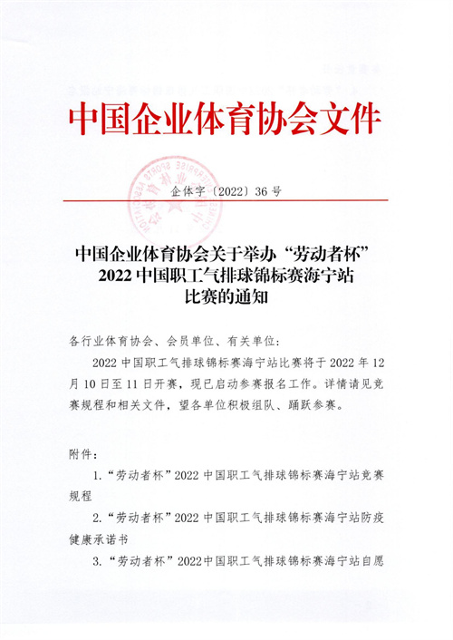 中國企業(yè)體育協(xié)會(huì)關(guān)于舉辦“勞動(dòng)者杯”2022中國職工氣排球錦標(biāo)賽海寧站比賽的通知