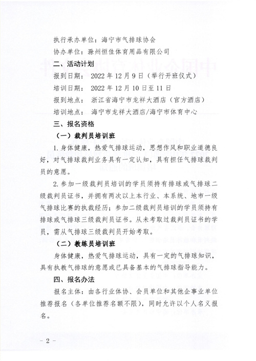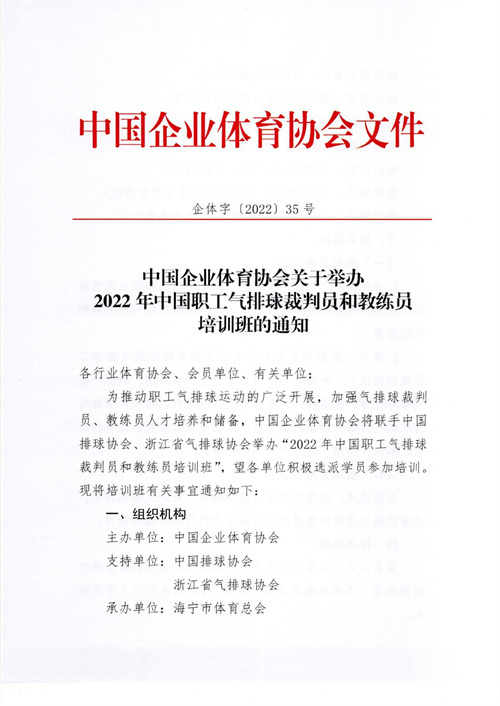 中國企業體育協會關于舉辦2022年中國職工氣排球裁判員和教練員培訓班的通知