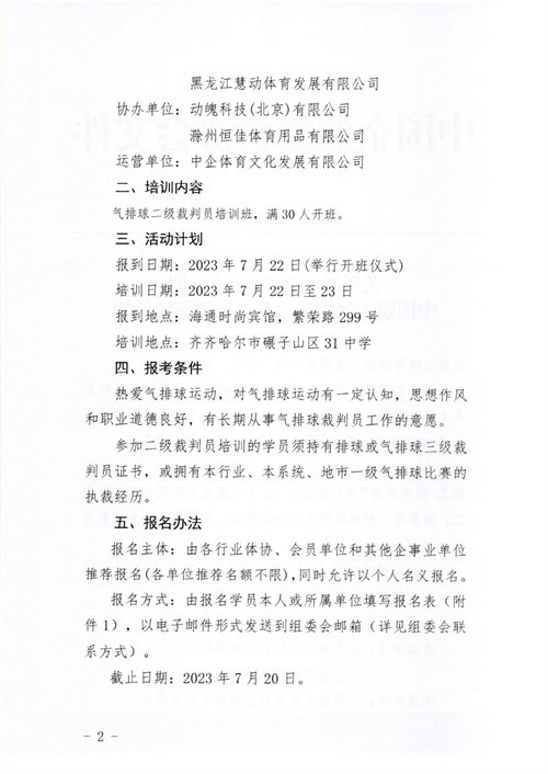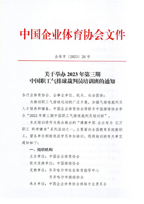 關于舉辦2023年第三期中國職工氣排球裁判員培訓班的通知