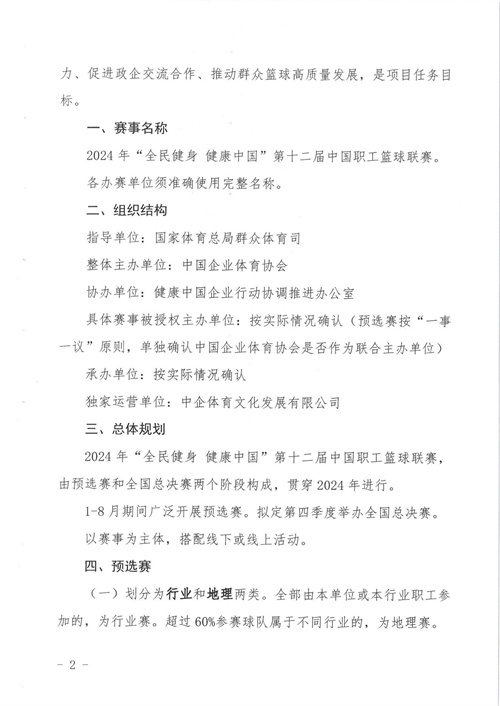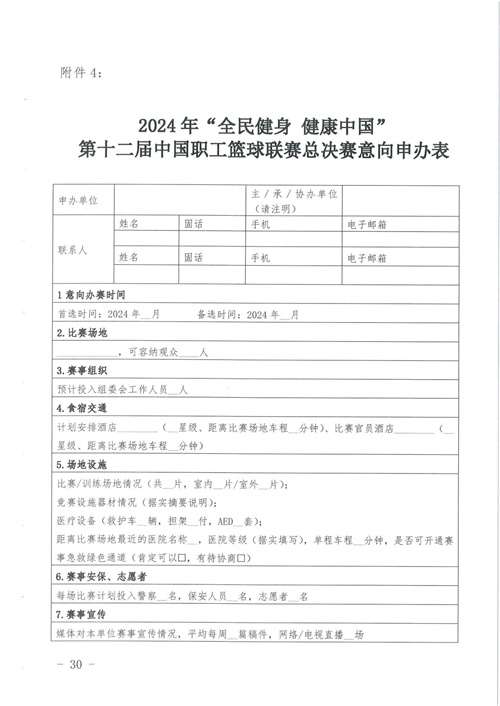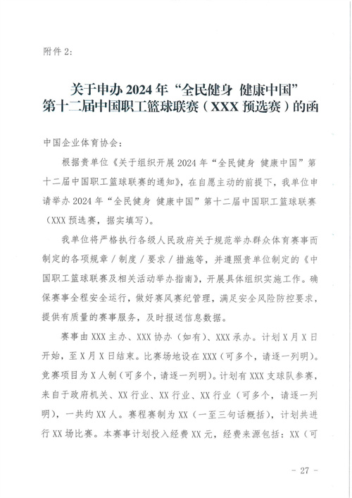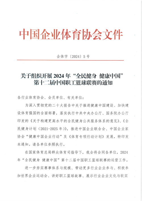 關于組織開展2024年"全民健身 健康中國"第十二屆中國職工籃球聯(lián)賽的通知