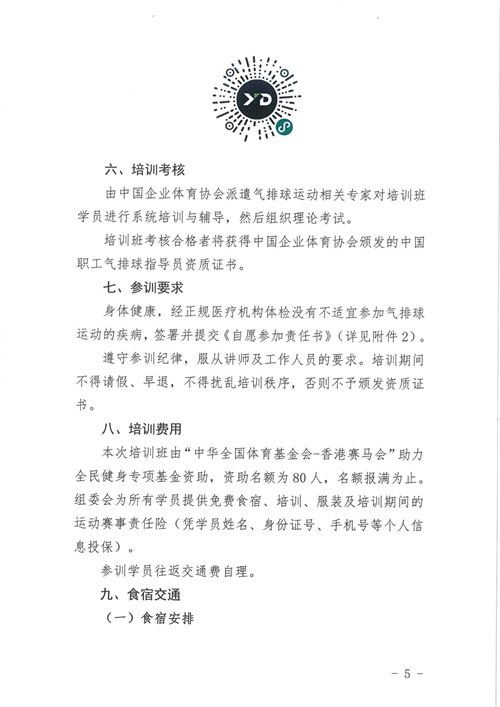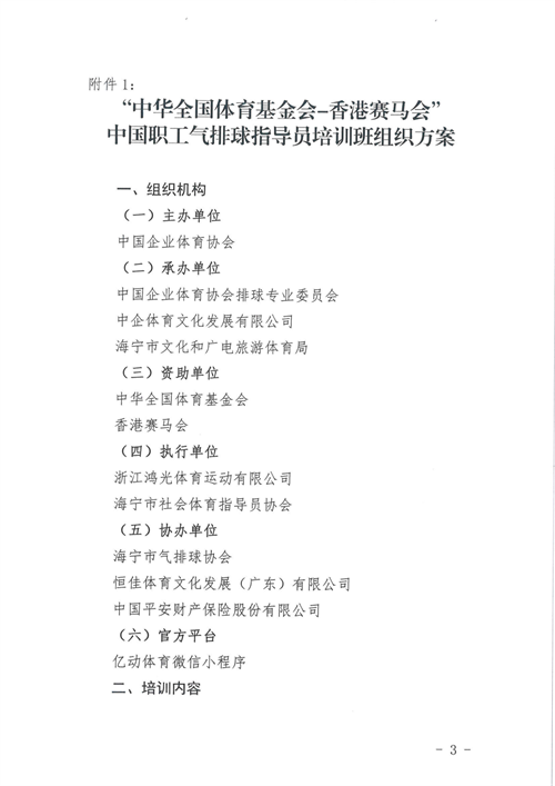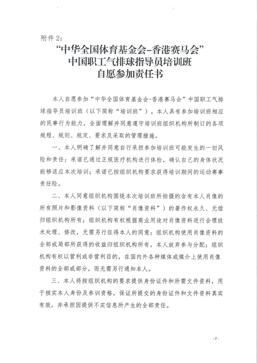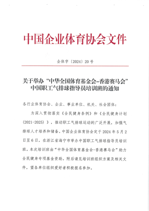 關于舉辦“中華全國體育基金會-香港賽馬會”中國職工氣排球指導員培訓班的通知